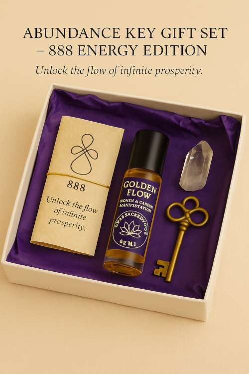 The Abundance Key 888 Gift Set is a luxurious prosperity ritual box created to help you unlock wealth, expansion, and energetic flow. Each item in this sacred set supports your intention to attract new opportunities with clarity and confidence.