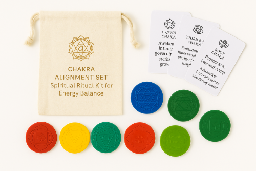 Restore balance and raise your vibration with this Chakra Healing Gift Set. This spiritual set includes seven engraved acrylic talismans, each aligned with a specific chakra energy: – Root – Grounding & stability – Sacral – Creativity & flow – Solar Plexus – Confidence & power – Heart – Love & compassion – Throat – Communication & expression – Third Eye – Intuition & vision – Crown – Connection & divine guidance Use them in meditation, energy healing sessions, or place them on your altar. The included ritual card guides you through a simple activation to cleanse and empower each talisman. Created and blessed by Omas Sacred Tools, this set is ideal for anyone seeking alignment, healing, and energetic transformation.