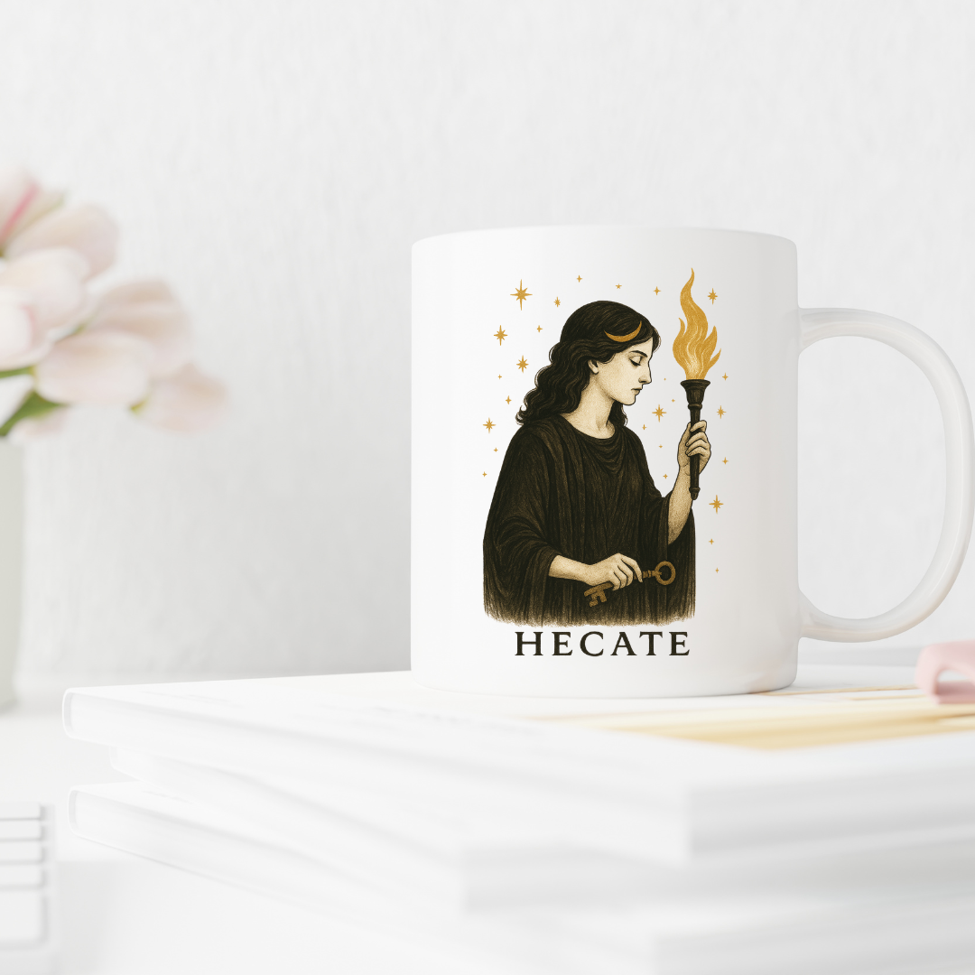 The Hecate mug portrays the triple-formed goddess as guardian of the crossroads.