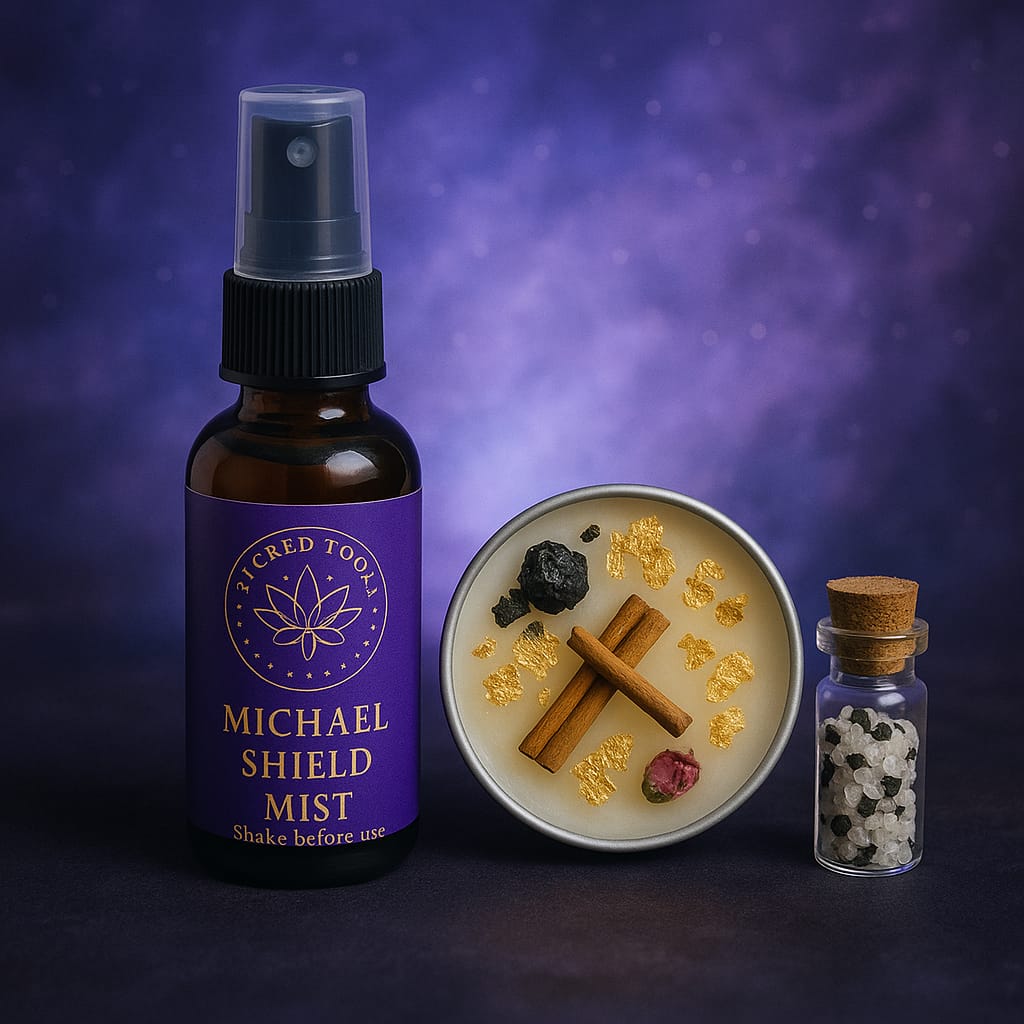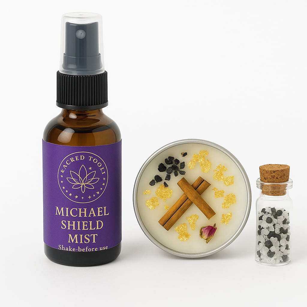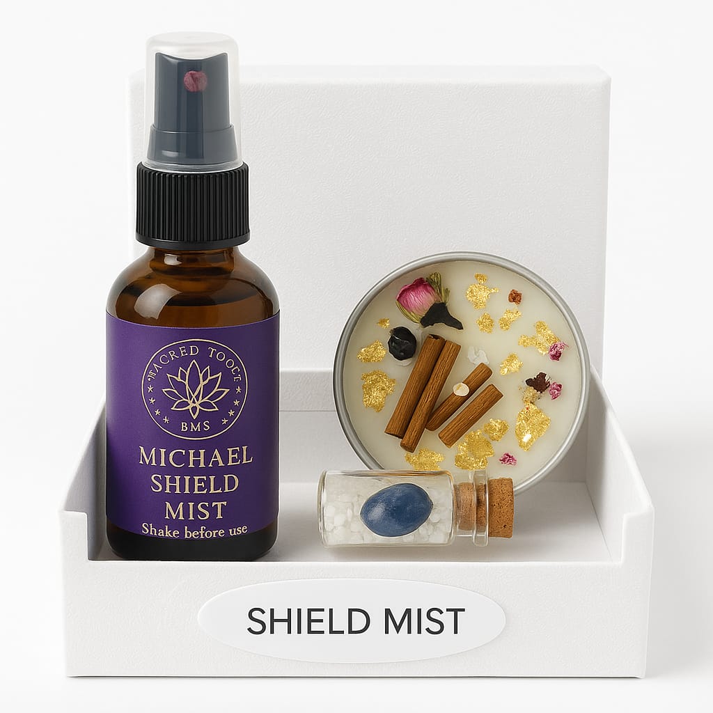 Tags: aura purification kit, energy clearing set, intentional living tools, metaphysical gift, moon ritual box, sacred mist spray, spiritual cleansing ritual, spiritual reset