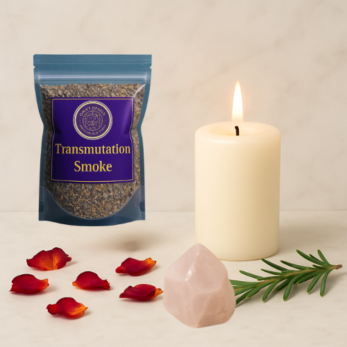 Transmutation Smoke is a transmutation ritual incense blend created to shift dense energy into light and harmony. Each handcrafted batch includes sacred herbs, resins, and roots such as sage, frankincense, cedar, and black pepper. These ingredients work together so that stagnant or negative energy is released, and your aura regains clarity and strength. Because it is energetically charged, this transmutation ritual incense blend aligns your spirit with transformation and renewal.