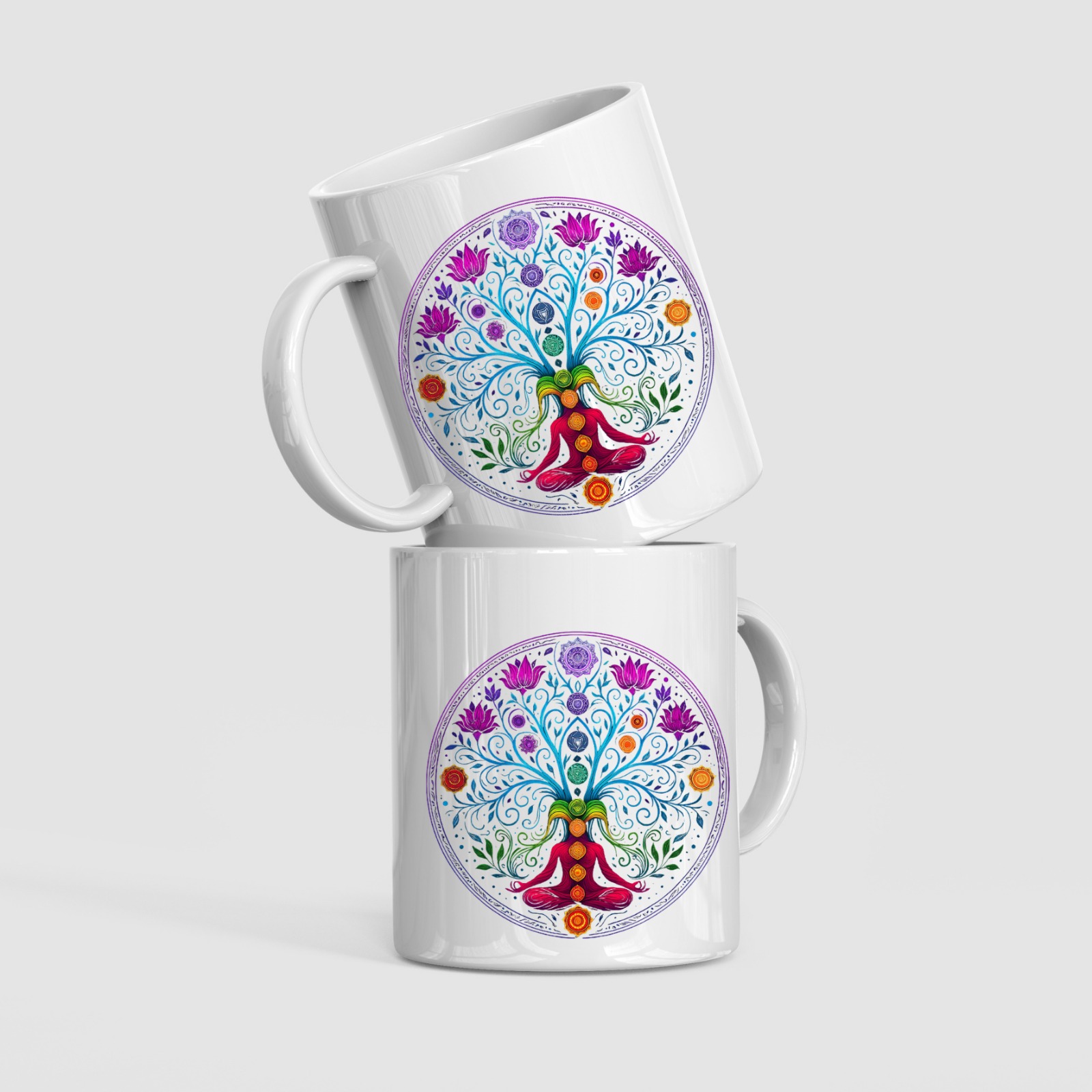 Elevate your daily ritual with the White Chakra Tree of Life Mug from Omas Sacred Tools by MJ. Crafted from premium, ultra-white ceramic and holding a generous 11 oz, this mug transforms your morning coffee,