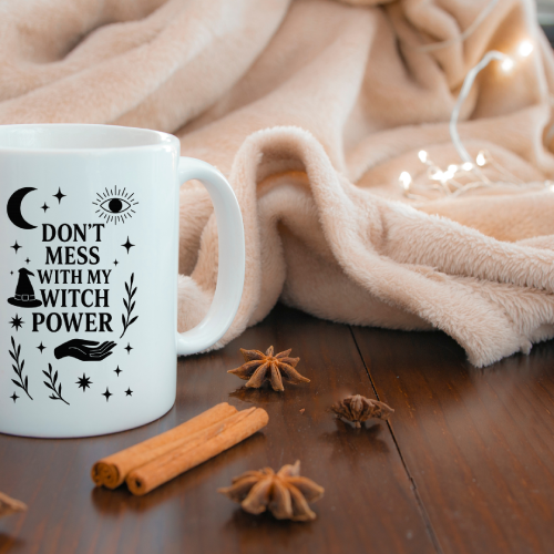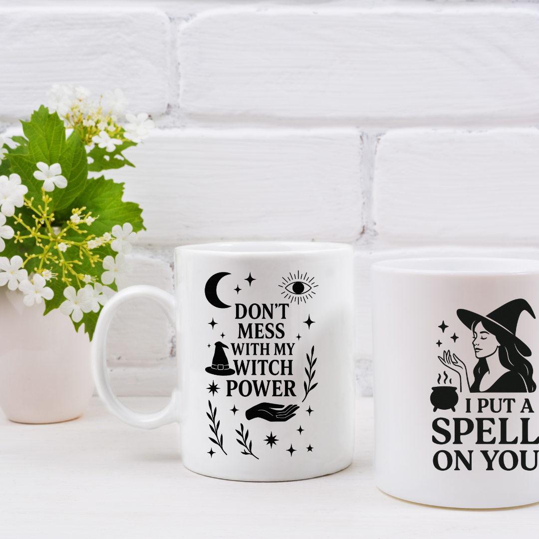 Step into your power with this mystical witchy mug set designed for the modern magic maker. Featuring two bold and elegant designs — “I Put a Spell on You” and “Don’t Mess With My Witch Power” — this 11 oz ceramic duo is more than just coffee cups… they are daily rituals in your hands.