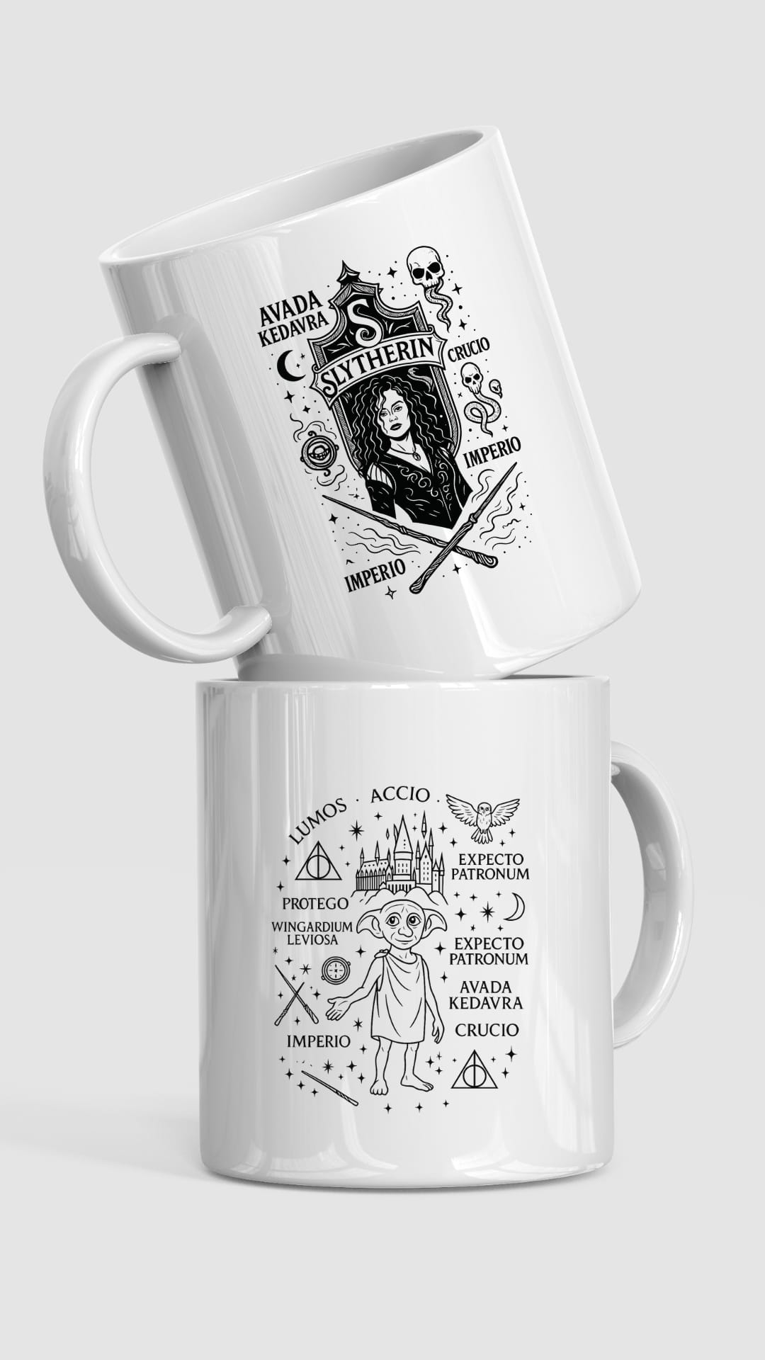 Bring the magic of Hogwarts into your daily ritual with this enchanting Magic Mug, designed for true lovers of spells, stars, and wizardry. Featuring iconic incantations like Lumos, Accio, and Expecto Patronum, along with a mystical black-line illustration of Dobby surrounded by Hogwarts symbols, this witchy cup is both whimsical and powerful.